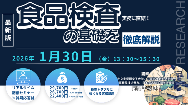 【ライブ配信/ZOOM】「実務に直結! 食品検査の基礎を徹底解説」セミナー開催!1月30日(金)主催:(株)シーエムシー・リサーチ