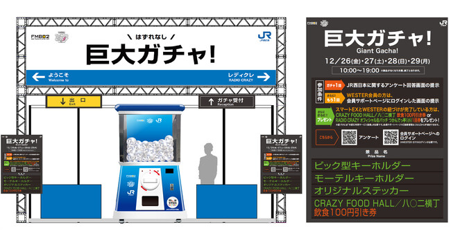 巨大ガチャ「モンスターカプセル」の企画・運営を行う株式会社グリーグローブ(本社:東京都文京区/代表取締役:上村 正治)は、2025年12月 26日(金)~29日(月) インテックス大阪で開催される「FM802 ROCK FESTIVAL RADIO CRAZY 2025」の「JR西日本」ブースに高さ2.4mの巨大ガチャ「モンスターカプセル」を提供します。