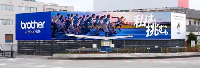 看板の中央に掲げられたキービジュアルは、11月に行われたオフィシャルサプライヤーの契約締結を機にブラザーのホームページに開設した、アジア競技大会および第5回アジアパラ競技大会(2026/愛知・名古屋)(以下、「アジアパラ競技大会」)の特設サイトでも使われている。このキービジュアルには、アスリートが自分の壁を突破し、起業家が社会の常識を塗り替える、ブラザーはいつの時代もこうした挑戦する「私」に”At your side.”の精神で寄り添い、ともに走る存在でありたいとの思いが込められているという。