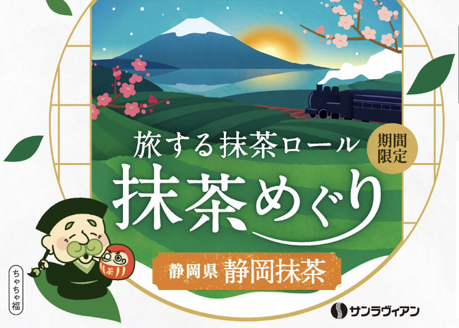 株式会社サンラヴィアン(本社:岡山県浅口郡里庄町、代表取締役:占部守弘)は、各地が誇る銘茶をめぐるシリーズ「抹茶めぐり」の第五弾として、『旅する抹茶ロール 抹茶めぐり 静岡抹茶』を2026年1月1日(木)より全国のスーパーマーケットにて期間限定で発売いたします。