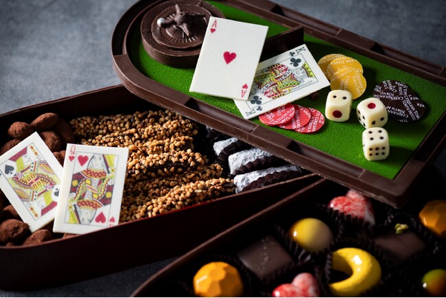 「CASINO 2026~運命のいたずら~」は2013年の販売開始以来、ホテルを代表するチョコレートとして毎年ご好評をいただいています。ルーレット、ディーラースティック、ダイス、カジノテーブルを表現したボックスに至るまで全てをチョコレートで精巧に再現し、パティシエの卓越した技術とこだわりが凝縮したフォトジェニックな逸品です。10個限定商品のため、ホテル公式ウェブサイトに予約専用URLをご用意し販売いたします。