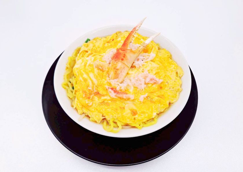 かにつゆ×蟹みそのスープに、半熟の蟹玉が器いっぱいにふんわりとのっています。