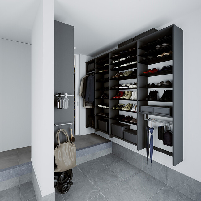 近年、住宅やインテリアデザインにおいて、ニュートラルカラーの需要が飛躍的に高まっています。特にグレー色は、空間に落ち着きと洗練された印象を与えるトレンドカラーとして、高い人気を誇っています。そこで、お客様のニーズを取り入れ、モダンで上質な玄関収納を演出するダークグレー色をラインナップに加えました。