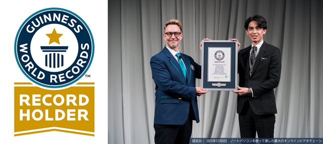 総勢292名による本取り組みは「ノートパソコンを使って渡した最大のオンラインビデオチェーン」として、2025年12月8日にギネス世界記録(TM)に公式認定されました。
