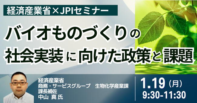 【JPIセミナー】経済産業省「バイオものづくりの社会実装に向けた政策と課題」1月19日(月)開催