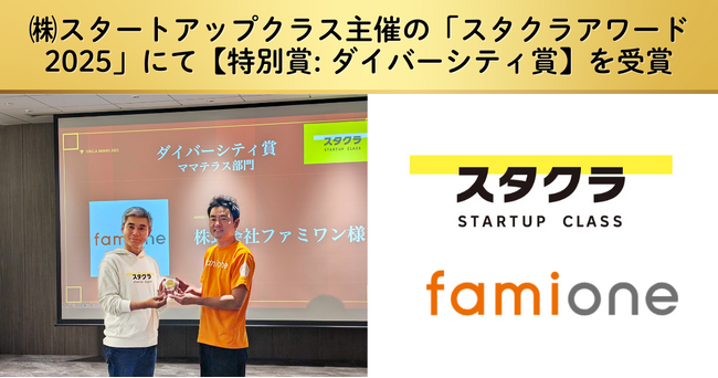 スタートアップクラス主催の「スタクラアワード2025」にて、ファミワンが【特別賞: ダイバーシティ賞】を受賞