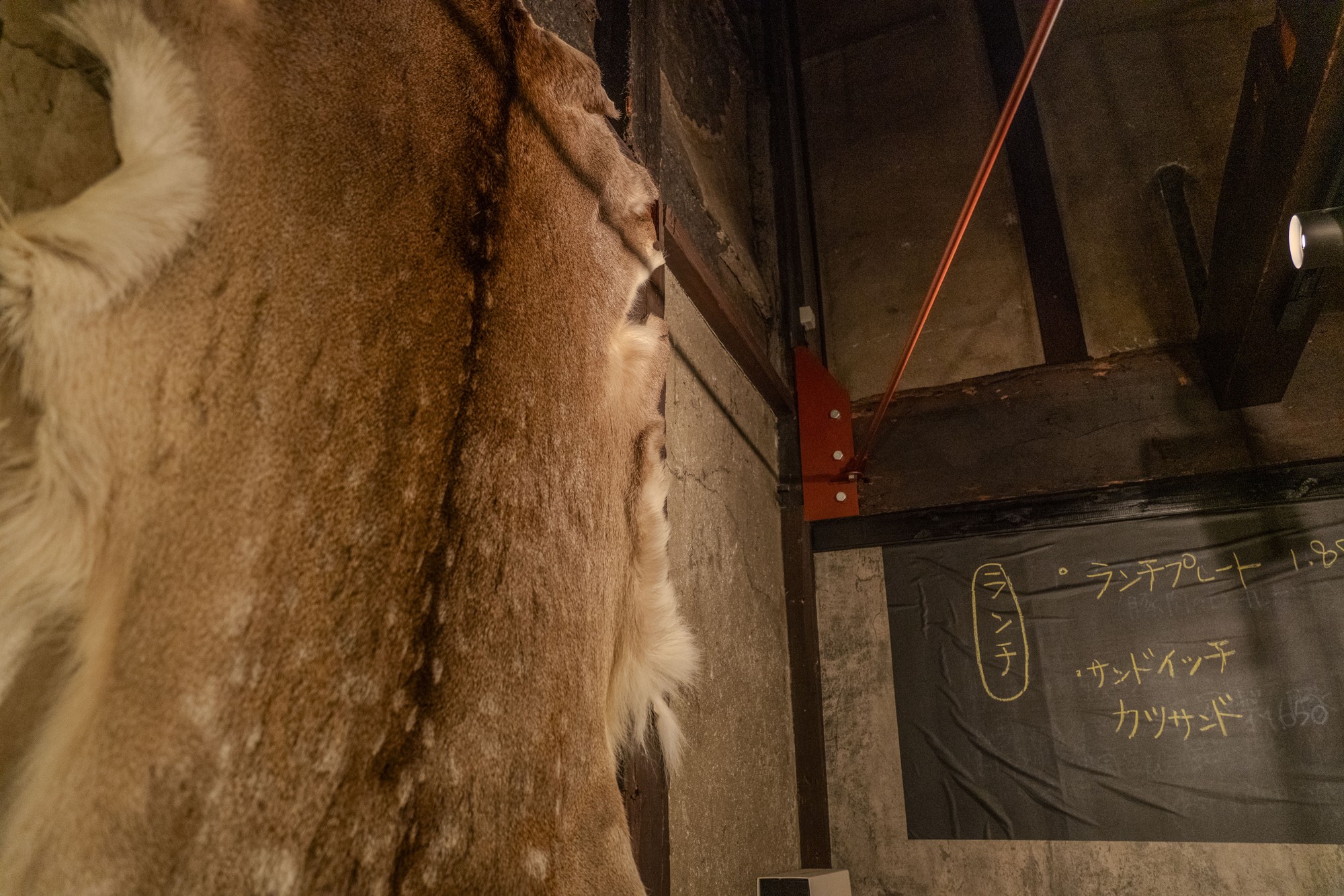 店内には、鹿や熊の毛皮も飾られる。生命をいただくということ、より深くこの土地や生命に触れる旅を