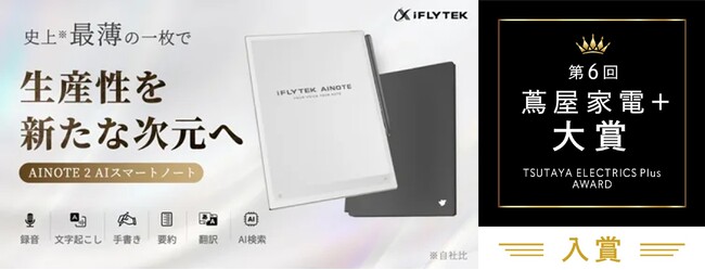 「iFLYTEK AINOTE 2」3位、「iFLYTEK AINOTE Air 2」9位第6回「蔦屋家電+ 大賞」Best10でW入賞