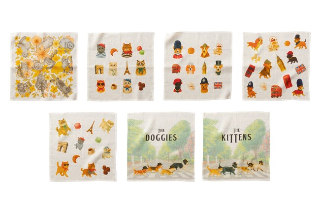 【ロンドン&パリ風犬猫】雑貨ブランド「Jubilee」からリネン素材ハンカチ新柄が7種類登場