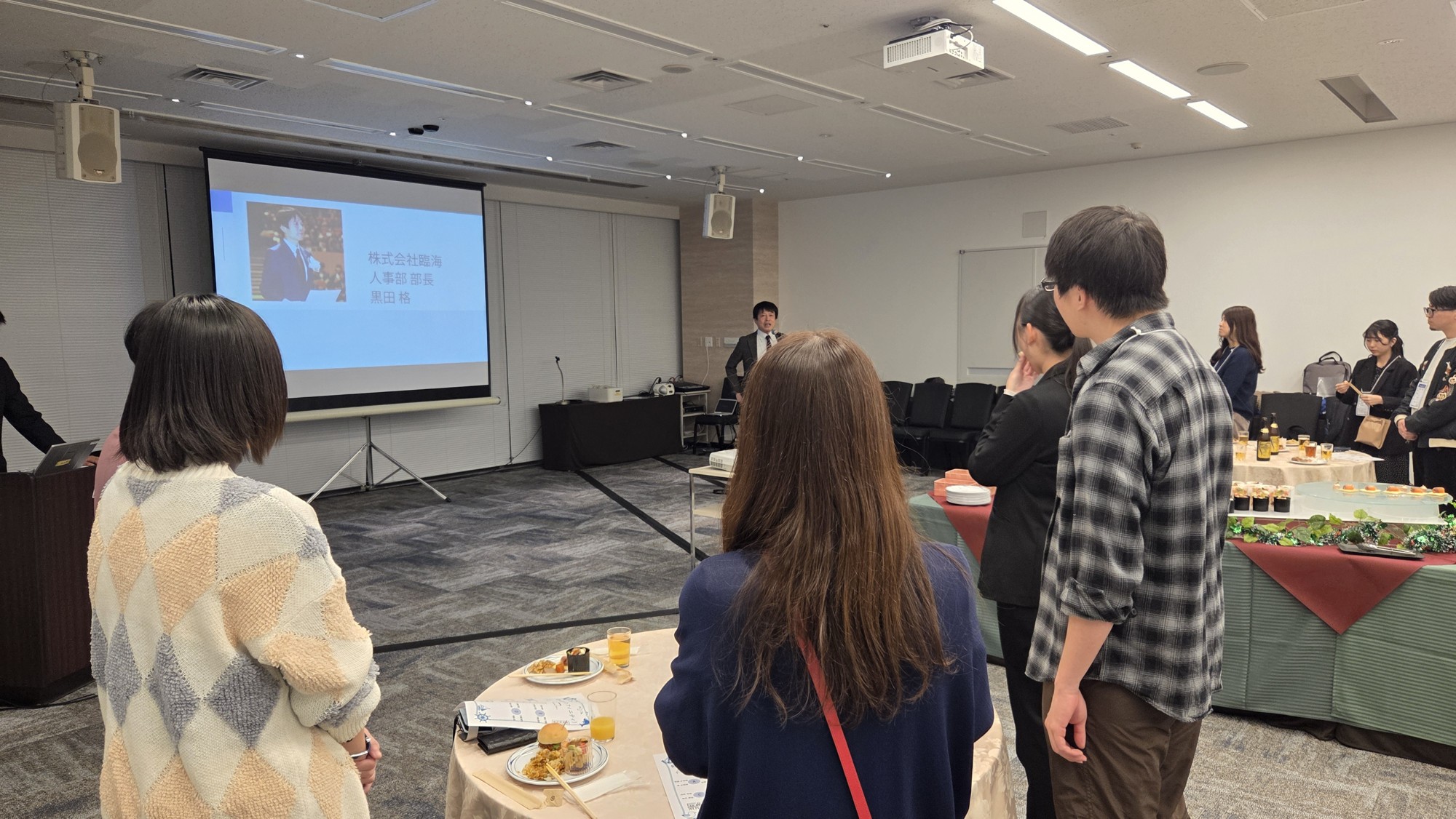 冒頭、司会を務めた人事部の大池氏からは、臨海独自の文化である活気ある挨拶とともに「皆さん、お帰りなさい!」という温かい言葉が贈られ、かつての仲間を迎え入れる「再会の場」としての空気が一気に醸成されました。