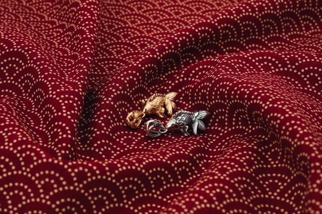 その第一弾として登場する「錦蓮華(KINRENGE)」チャームは、金魚の身体に蓮を模した背びれと尾びれを融合させたデザイン。金魚は龍が天へ昇る前の姿とも言い伝えられ、邪気を払い災いから身を守る存在とされている。一方、蓮華は泥の中から清らかな花を咲かせることから、俗世の煩悩に染まらず悟りを開く象徴とされてきた。