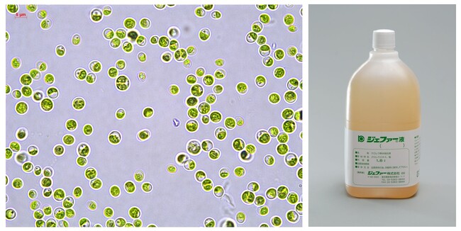 左:微細藻類クロレラ、右:ジェファー液