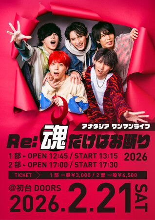 - METEORA st.所属アーティスト"アナタシア"ワンマンライブ 「Re:魂だけはお断り 2026」2月21日(土)初台DOORSにて開催決定新オフィシャルファンクラブ先行抽選販売受付がスタート。01/05 18:03
