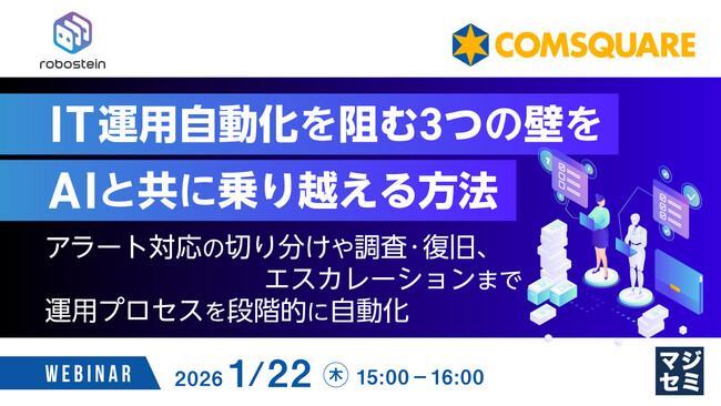 マジセミ株式会社は「IT運用自動化を阻む3つの壁をAIと共に乗り越える方法」というテーマのウェビナーを開催します。