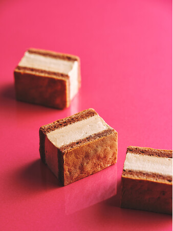軽やかなショコラシフォン生地に、厳選した乳味豊かな生クリームと、ベトナムカカオを使用した奥行きのあるショコラクリームを重ねました。ひと口で、カカオの芳醇な香り、ショコラクリームのまろやかさ、シフォン生地のほどけるような口どけが三位一体となって広がります。