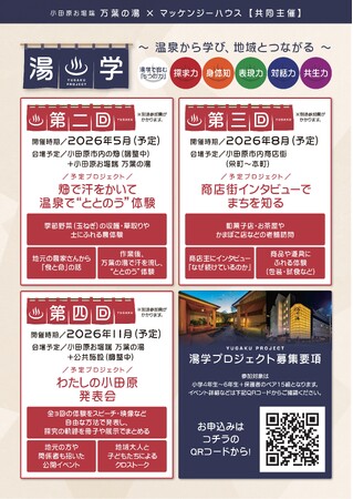 株式会社マッケンジーハウス(神奈川県平塚市)と、小田原お堀端 万葉の湯は、共同主催により、親子で地域を学ぶ探究型教育プログラム「湯学(YUGAKU PROJECT)」 を2026年2月より開始します。