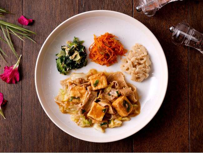 今回新登場する「豚肉と絹揚げの中華あん」は、絹揚げと豚肉、旬の野菜が織りなす上品な中華の一皿です。やわらかな絹揚げと豚肉を、コク深いオイスターソースベースの中華あんでやさしくとじました。白菜、えのき、青ねぎの旨味と香りが、まろやかなあんと絡み合い、ほっとする味わいに。生姜の香りがさっぱりと後味を整え、豚肉の旨味と食べ応えを引き立てます。よく混ぜて、あんを豚肉や野菜にたっぷりと絡めると、オイスターソースの深い旨みがより楽しめます。