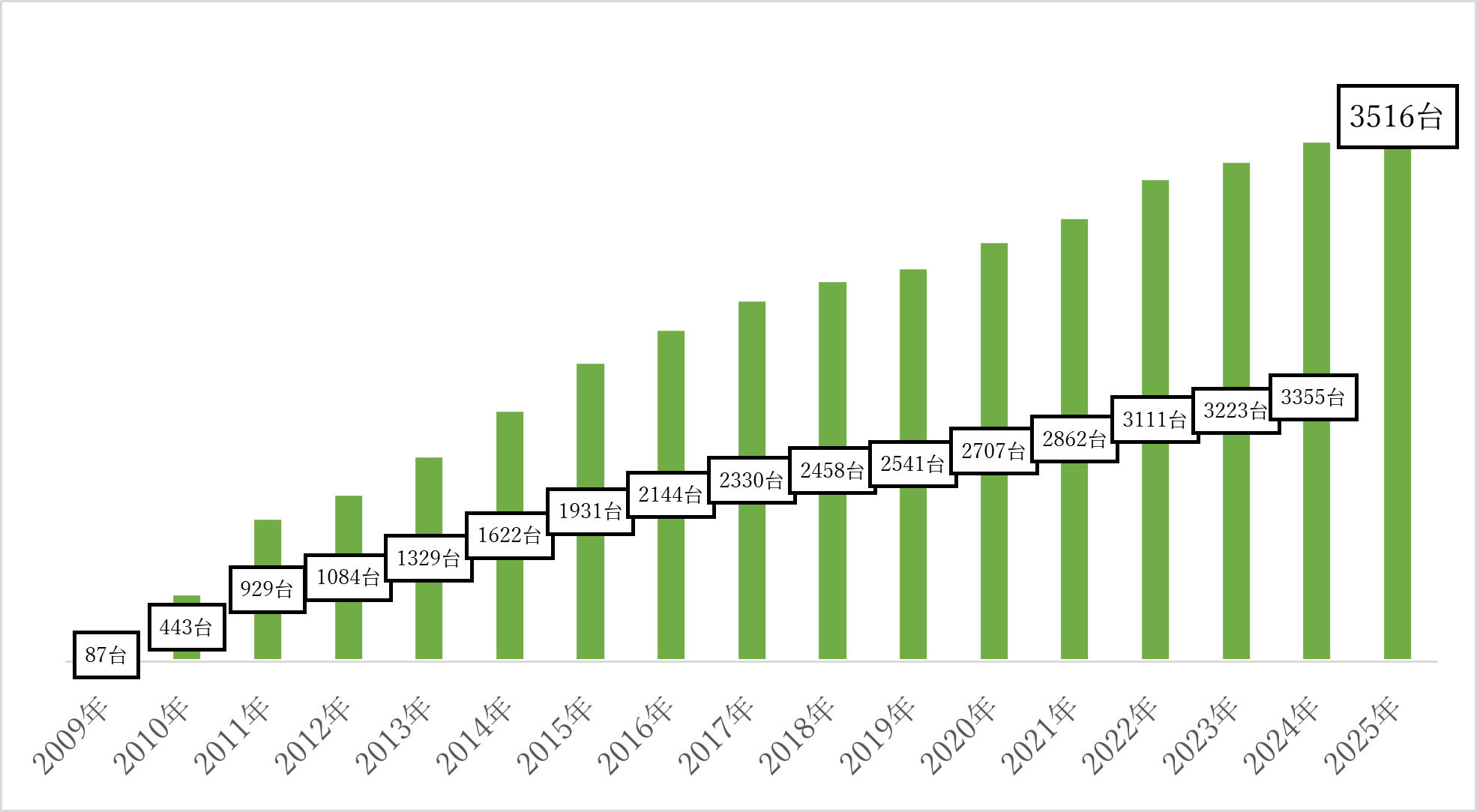 2011年に緑ナンバー、2022年に白ナンバー、ともに事業者へのアルコール検知器使用義務化の影響を受け台数を伸ばした年がありましたが、ここ3年は一定のニーズはありながらも、200台以下とやや低調な実績となっています。本来、「飲酒運転検挙者」向けの機器であるがゆえ、事業者向け市場においては、多彩なアルコール検知器の中でその存在が埋もれている格好と言えます。