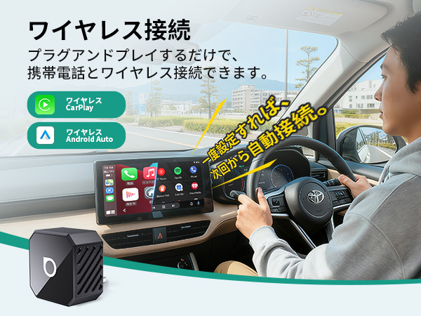 車のUSBポートに挿すだけで、スマホとナビが自動でワイヤレス接続。