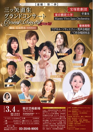 『三ッ矢直生グランドコンサート VOL.2』開催決定! 特別出演に宝塚歌劇団のレジェンド安奈淳。チケット発売中