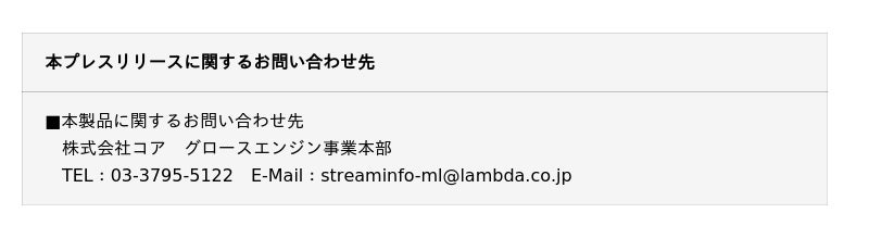 「株式会社コア」のプレスリリース