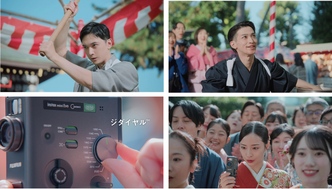 本TVCM は、2025年12月26日(金)に公開された「お正月を写そう♪2026 “チェキ(TM)”運命のもちつき」篇の完結編です。広瀬さんが手にしていた”動画も撮れるチェキ(TM)”の全貌が明らかになります。本CMには俳優の広瀬すずさん、横浜流星さん、吉沢亮さん、尾美としのりさんが登場。町内のもちつき大会当日、横浜さんと吉沢さんが“阿吽の呼吸”で凄まじい勢いのもちつきを披露します。そんな二人の姿を広瀬さんが様々な時代をイメージした「ジダイヤル(TM)」エフェクトを使って動画を撮影し、チェキプリント(TM)にして集まった観客に手渡すストーリーです。“動画も撮れるチェキ(TM)”「mini Evo Cinema」の魅力を紹介します。