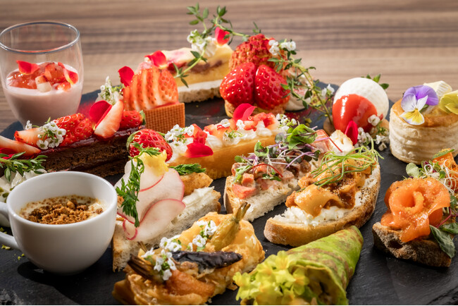 また、フリーフローのお飲み物にはフランスのオーガニックティーメゾンKUSMI TEA(クスミティー)をご用意。香りや味わいの異なる紅茶を、料理やスイーツに合わせてお楽しみいただけます。
