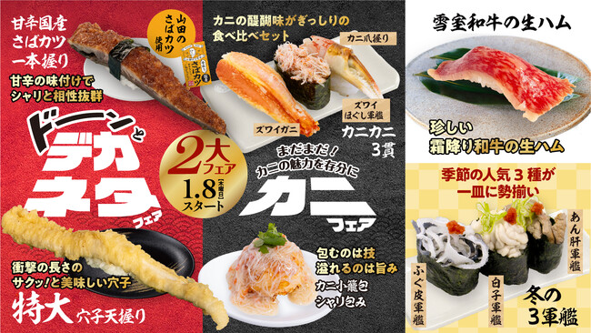 衝撃サイズのネタ×冬の味覚カニ!回し寿司 活/寿司活、1月8日(木)より「デカネタフェア」「カニフェア」同時開催
