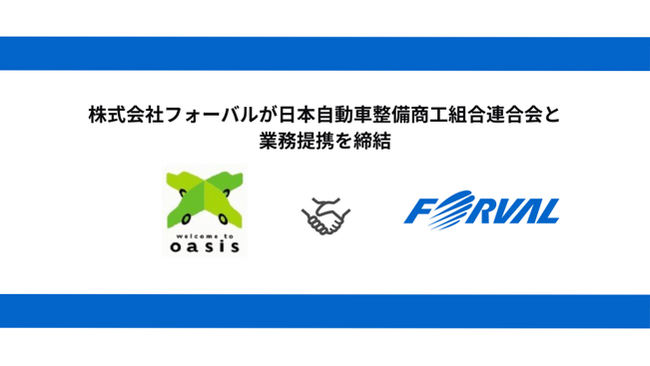 『「新しいあたりまえ」で、新しい世界を創るFORVAL』を理念に掲げ、ESG経営を可視化伴走型で支援する「企業ドクター(次世代経営コンサルタント)集団」の株式会社フォーバル(本社:東京都渋谷区、代表取締役社長:中島 將典、以下「フォーバル」)は、日本自動車整備商工組合連合会(所在地:東京都港区、会長:喜谷 辰夫)と業務提携を締結いたしました。