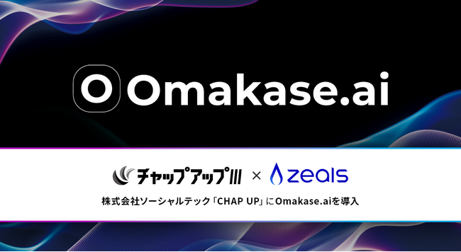 接客AIエージェントを提供する株式会社ZEALS(所在地:東京都目黒区、代表取締役:清水正大、以下「ジールス」)は、同社が提供するマルチモーダル接客AIエージェント「Omakase.ai」を、株式会社ソーシャルテック(所在地:東京都新宿区、代表取締役:望月 亨、以下「ソーシャルテック」)が展開するヘアケアブランド「CHAP UP」の公式サイトに導入したことをお知らせいたします。