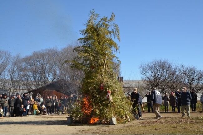 国営ひたち海浜公園では、1月11日(日)に「どんど焼き」を開催します。「どんど焼き」は、お正月にお迎えした歳神様を炎から上がる煙に乗せてお見送りする意味があるとされる火祭り行事です。公園ボランティアの「みはらしの里パートナー」協力のもと、来園されるお客様とともに心も身体もあたたまる小正月の風景をつくり出します。