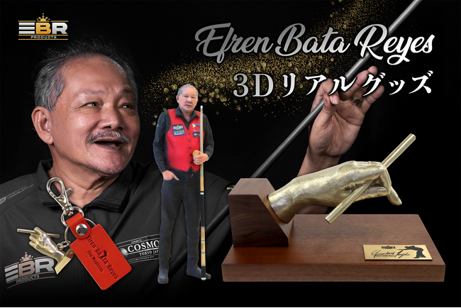人の体の一部や全身をリアルに商品化するブランド 『History Maker(https://www.history-maker.jp/)』を運営する株式会社キャステム(広島県福山市、代表取締役:戸田拓夫)は、“ビリヤードの神様”として世界的に知られるエフレン・レイズ氏の3Dフィギュアおよび、本人から直接型取りした実寸大の手型モデル(1/1スケール)とミニチュア化した手型キーホルダーを日本国内の代理店であるEBR Productsを通じて販売いたします。