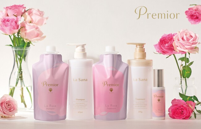 ヘアトリートメント カウンセリング 国内売上No.1(※1)の海藻コスメブランド「ラサーナ」を展開する株式会社ヤマサキ(本社 : 広島市、代表取締役 兼 CEO : 土肥 光)は、『ラサーナ プレミオール シャンプー ラ・ローズの香り』(375ml)・『ラサーナ プレミオール トリートメント ラ・ローズの香り』(375g) ・『ラサーナ プレミオール ヘア エッセンス ラ・ローズの香り』(65ml) の3アイテムを2026年4月1日(水)から通信販売・インターネットにて数量限定で新発売いたします。