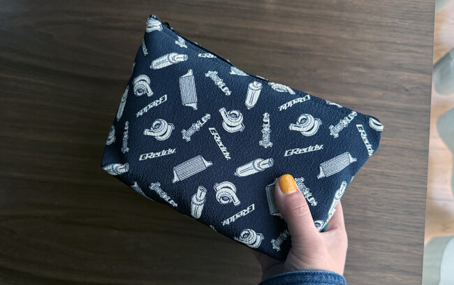 GLION GROUP(ジーライオングループ/所在地:兵庫県神戸市、代表取締役:菊地秀武)は、同グループが運営するアフターパーツメーカーの株式会社昭和トラスト(所在地:千葉県山武郡)と、京都・丹後の絹織物の伝統技術を受け継ぐ宮眞株式会社(ミヤシン 所在地:京都府与謝郡)が、異業種コラボレーションによるオリジナル雑貨シリーズを共同開発しました。車のパーツをモチーフにした柄をちりめん生地に落とし込み、がま口・ポーチ・風呂敷の3アイテムを展開します。