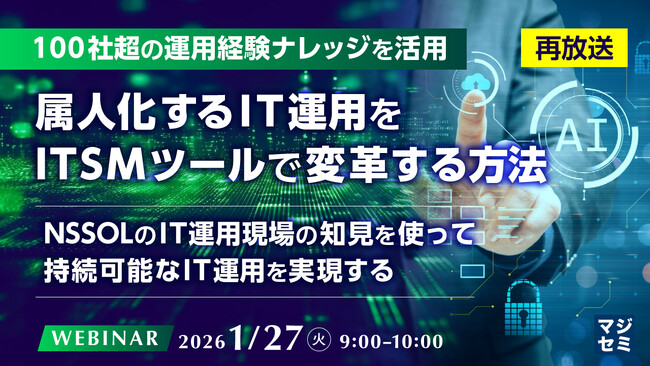 マジセミ株式会社は「【再放送】【100社超の運用経験ナレッジを活用】属人化するIT運用をITSMツールで変革する方法」というテーマのウェビナーを開催します。