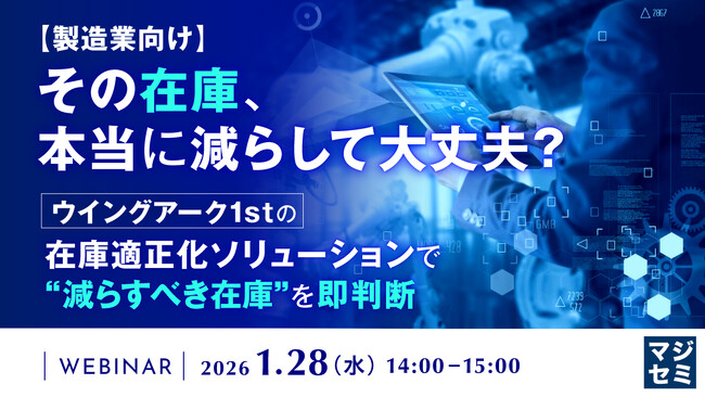 マジセミ株式会社は「【製造業向け】その在庫、本当に減らして大丈夫? 」というテーマのウェビナーを開催します。
