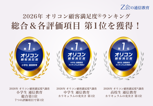 株式会社増進会ホールディングス (Z会グループ)のグループ会社である株式会社Z会は、オリコン株式会社 (本社:東京都港区、代表取締役社長:小池 恒)が2026年1月5日に発表した「オリコン顧客満足度(R)ランキング」の「小学生 通信教育」にて11年連続総合第1位、「中学生 通信教育」にて「カリキュラムの充実さ」「教材・講義」「受講効果」第1位、「高校生 通信教育」にて「カリキュラムの充実さ」「学習フォロー体制」第1位を獲得しました。