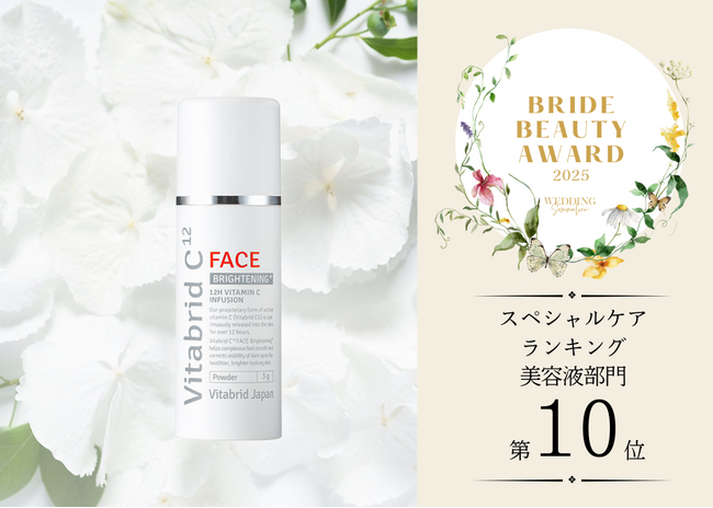 株式会社ビタブリッドジャパン(本社:東京都港区、代表取締役:大塚博史)が展開するスキンケア製品「ビタブリッドCフェイス ブライトニング プラス」が、ウェディングソムリエ主催「花嫁美容アワード2025」スペシャルケア部門にてTOP10入りを果たしました。