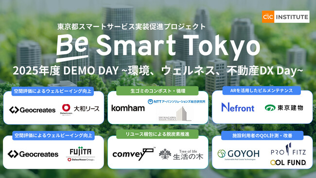 CIC Institute(本社:東京都港区虎ノ門、CEO デニース・メドレンカ)は、東京都が推進する「東京都スマートサービス実装促進プロジェクト『Be Smart Tokyo』」において、2025年度の成果発表の場となる 2つのデモデイイベントをCIC Tokyoにて開催いたします。