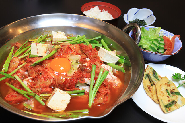 キムチ鍋/チヂミ/ミニサラダ/ごはん/小鉢