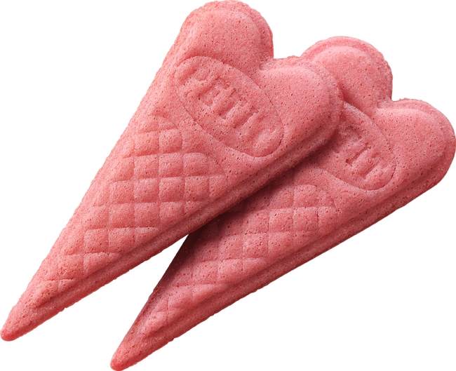 本品はどんなメニューにも合わせやすい、淡いピンクのハート形で、ほんのり苺風味が特徴です。長年培ってきたコーン焼成技術を活かし、自然で上品な色合いと、ソフトクリームに寄り添う適度な苺風味を実現しました。和風から“ゆめかわ”系まで幅広い世界観に馴染み、挿したり、クラッシュして振りかけたりと、トッピングのバリエーションを拡げます。