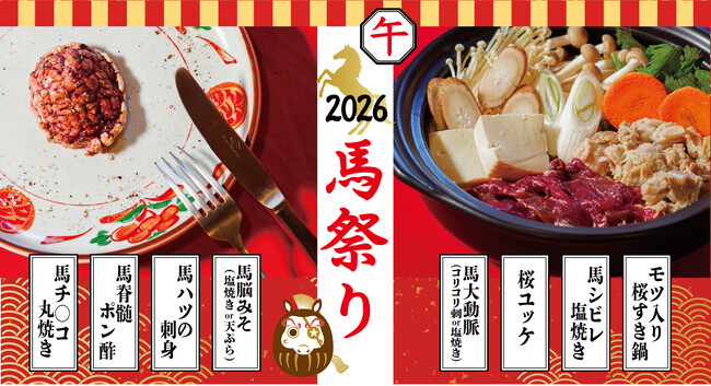 2026年の干支「馬」を食べて開運!米とサーカスで【新春・馬祭り】開催。脳みそ・脊髄・さらには巨大な陰茎の丸焼きまで、希少部位を食べて開運・飛躍の年に。