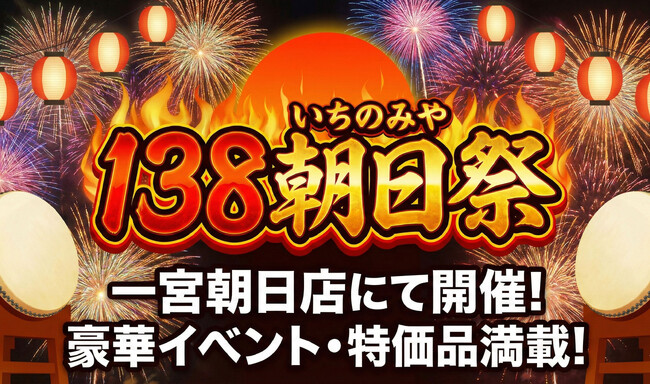 株式会社あみやき亭(本社:愛知県春日井市)は、一宮朝日店限定で、地元「一宮(いちのみや=138)」にちなんだ特別キャンペーン『138(いちのみや)朝日祭』を開催いたします。