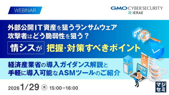マジセミ株式会社は「外部公開IT資産を狙うランサムウェア、攻撃者はどう脆弱性を狙う? 情シスが把握・対策すべきポイント」というテーマのウェビナーを開催します。