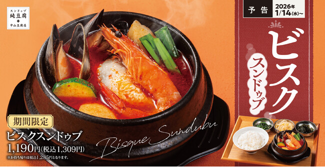 アークランドサービスホールディングス株式会社の子会社、「肉めし岡もと」などを運営する株式会社トビラダイニング(本社:東京都千代田区/代表:布施 裕康)は、スンドゥブ定食専門店「スンドゥブ 中山豆腐店」にて、期間限定メニュ「ビスクスンドゥブ」を2026年1月14日(水)より販売開始いたします。