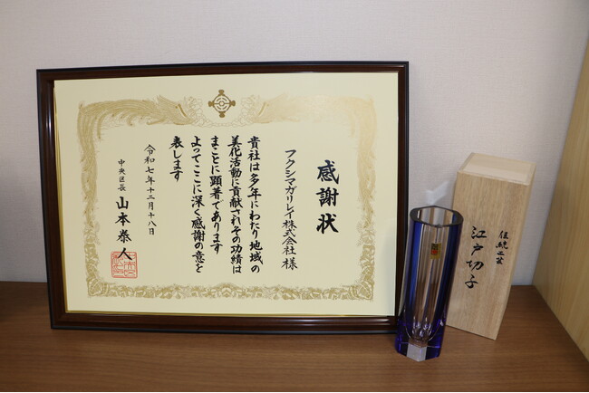今回の感謝状贈呈は、当社の「地域社会との共生」を目指した地道な取り組みが認められたものと受け止めております。