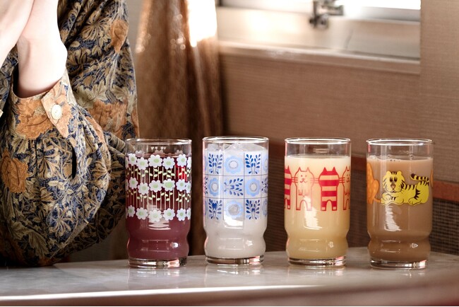 今回は、人気の2柄に新柄「キャット」「タイルリーフ」が加わり、アレンジコップは全10柄のラインナップになりました。新柄2柄は、2025年9月に阪急うめだ本店で開催されたイベント『ときめきレトロ巡り』に伴う投票企画により、幅広い世代のファンの声に後押しされ、待望の復刻が実現。「キャット」については他のアイテム展開も予定しており、詳細については本日15:00公開の別プレスリリースにてご紹介いたします。