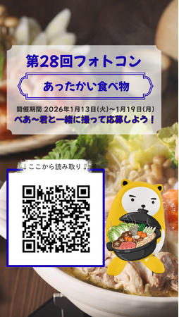 本企画は、専用ARを使用して撮影した写真をSNSに投稿することで、どなたでも参加できるフォトコンテストです。第28回となる今回は、新年の時期に合わせ、「べあ~君と、あったかい食べ物。」をテーマに、日常の何気ないひとときを切り取った投稿を募集します。