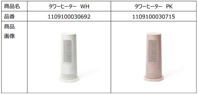 このたび、弊社が2024年9月から2025年12月まで販売いたしました「タワーヒーター(2024年製)」につき、製造工程での配線結合不良による動作不良や、発熱により本体の一部に熱変形が発生した商品が見つかりましたので、対象商品を自主回収することといたしました。