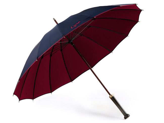 前原光榮商店は生地の製作から傘の仕立てに携わりました。生地はこの傘のために表面を紺色、裏面を赤色に織り上げた両面織りの別注品です。落ち着いた紺色に、ジャガード織のロゴが赤色に上品に映えるシンプルながらも遊び心あるデザインが魅力です。[画像4: https://prcdn.freetls.fastly.net/release_image/152079/35/152079-35-da7c6094c14ac17e099bb31de4b87150-1500x1558.jpg?width=536&quality=85%2C75&format=jpeg&auto=webp&fit=bounds&bg-color=fff ]
